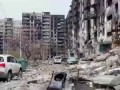 Котик на разрушенном здании в Мариу...