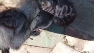 Котёнок спокойно ел свою еду, пока ...