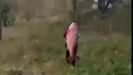 Низкорослый абориген кого-то поймал