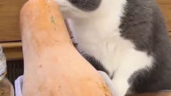 Кошка забралась на гигантскую плюше...