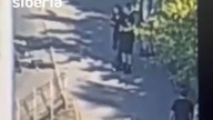 Момент наезда велосипедиста на деву...