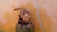 Щенок играет