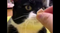 Слепой парализованный кот ест