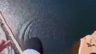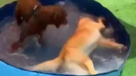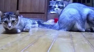 Котейка упал в бассейн, запаниковал...