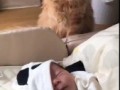 Котик впервые видит малыша
