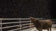 Коровка кушает первый снег