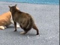 Котенок жрет щенка