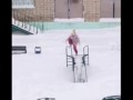 Walker breaks ice with a hammer to ...