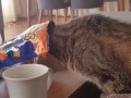 Этот котейка очень любит чипсы... з...