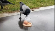 Вороны отец и сын решают пазл с яйц...
