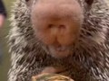 Детёныш дикобраза впервые пробует т...