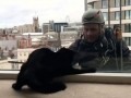 Котейка играет с мойщиком окон, что...