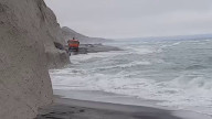 Большегрузы проезжаю по берегу Охот...