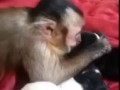 Обезьянка и новорожденные щенки