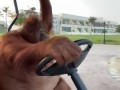 Орангутанг за рулём голькара