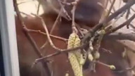Белочка сделала хижину у окна