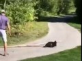 Бобр тащит дерево