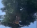 Гаишник спрятался от собак в машине...