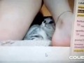 Сексуальная блондинка прыгает в озе...