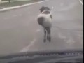 Не идет, а пишет попой по асфальту