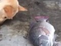 собак поит рыбу