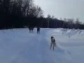 Бобр тащит дерево