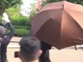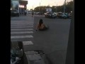 Протестующие роняют столб с камерам...