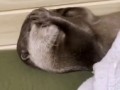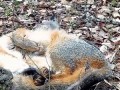 Наглая синица выщипывает шерсть у с...