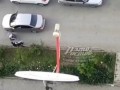 Падение стекла на голову велосипеди...