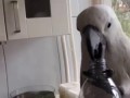 Попугай научился пить из бутылки