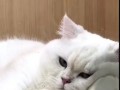 Кот ест лежа