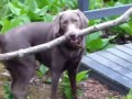 Находчивая собака проносит палку че...