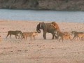 Слоненок сражается против 14 львиц