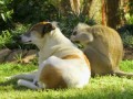 Мартышка дружит с собаками из приют...