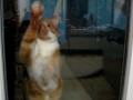 Котэ,протирает окно