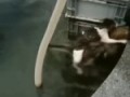 Собака спасает кота из фонтана