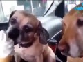 Большой и маленький щенок едят моро...