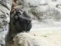 Gorilla smashes a coconut