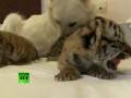 Собака приняла тигрят