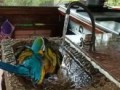 Попугай купается