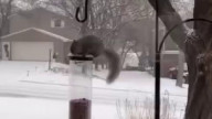 Белка и кормушка для птиц