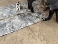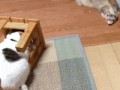 Кот прячется от хорька
