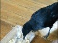 Smart-crow-feeds-cat-and-dog