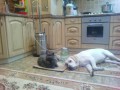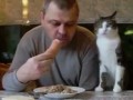 Кот тянется за едой