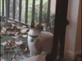 Cat-backs-through-door