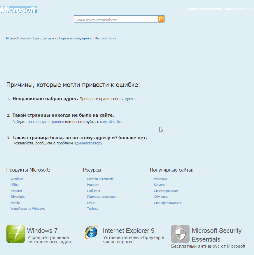 Microsoft 404 ошибка