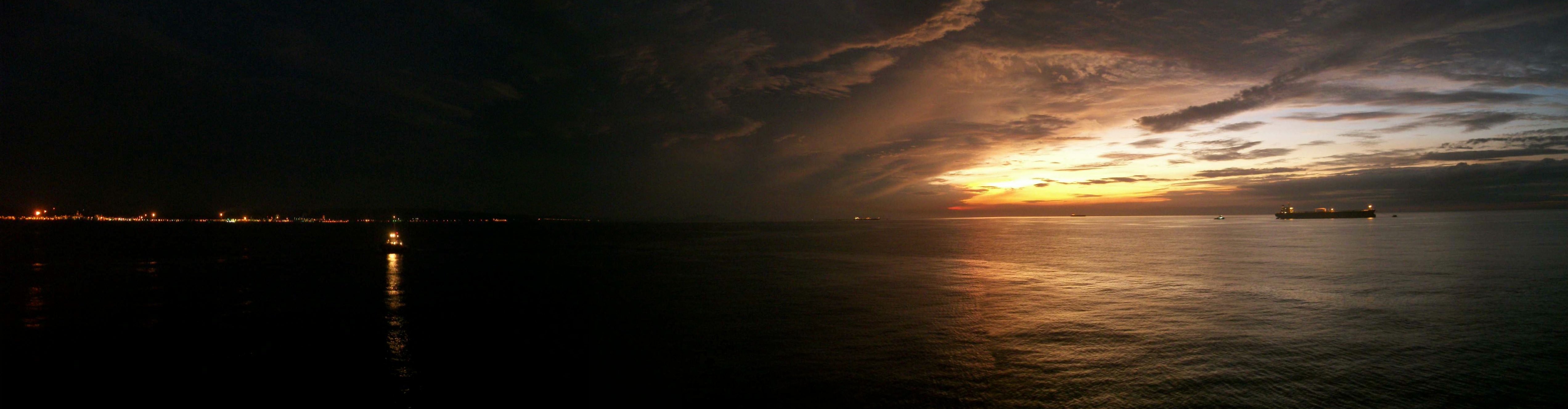 На якоре возле нефтеперерабатывающего комплекса "Хосе", Венесуэла. Закат.