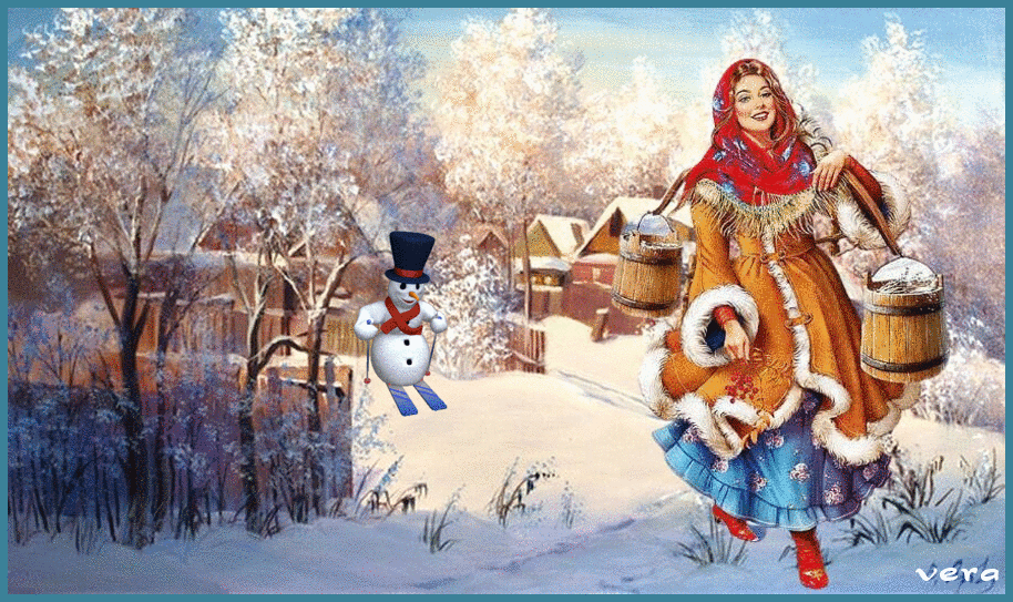 деревня , снеговик, зима