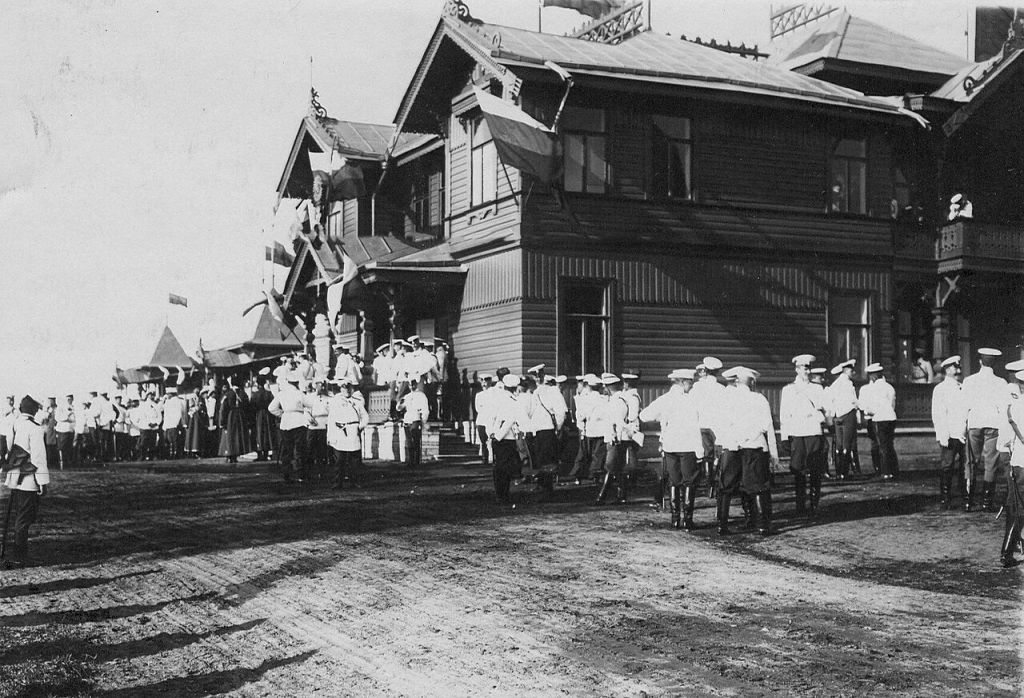 5.Зрители и участники у трибун в ожидании приезда импер