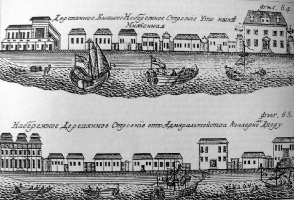2.Литография Набережная Невы. Застройка деревянными зд